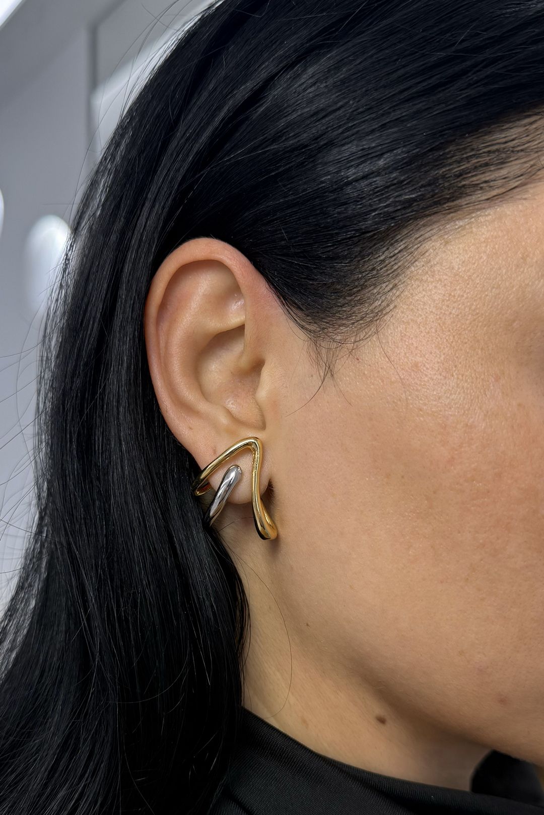 Κοντά σκουλαρίκια σε απόχρωση χρυσού και ασημί.