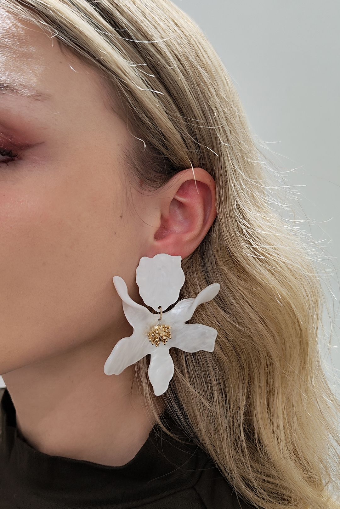 Κοντά σκουλαρίκια σε απόχρωση χρυσού και άσπρου.