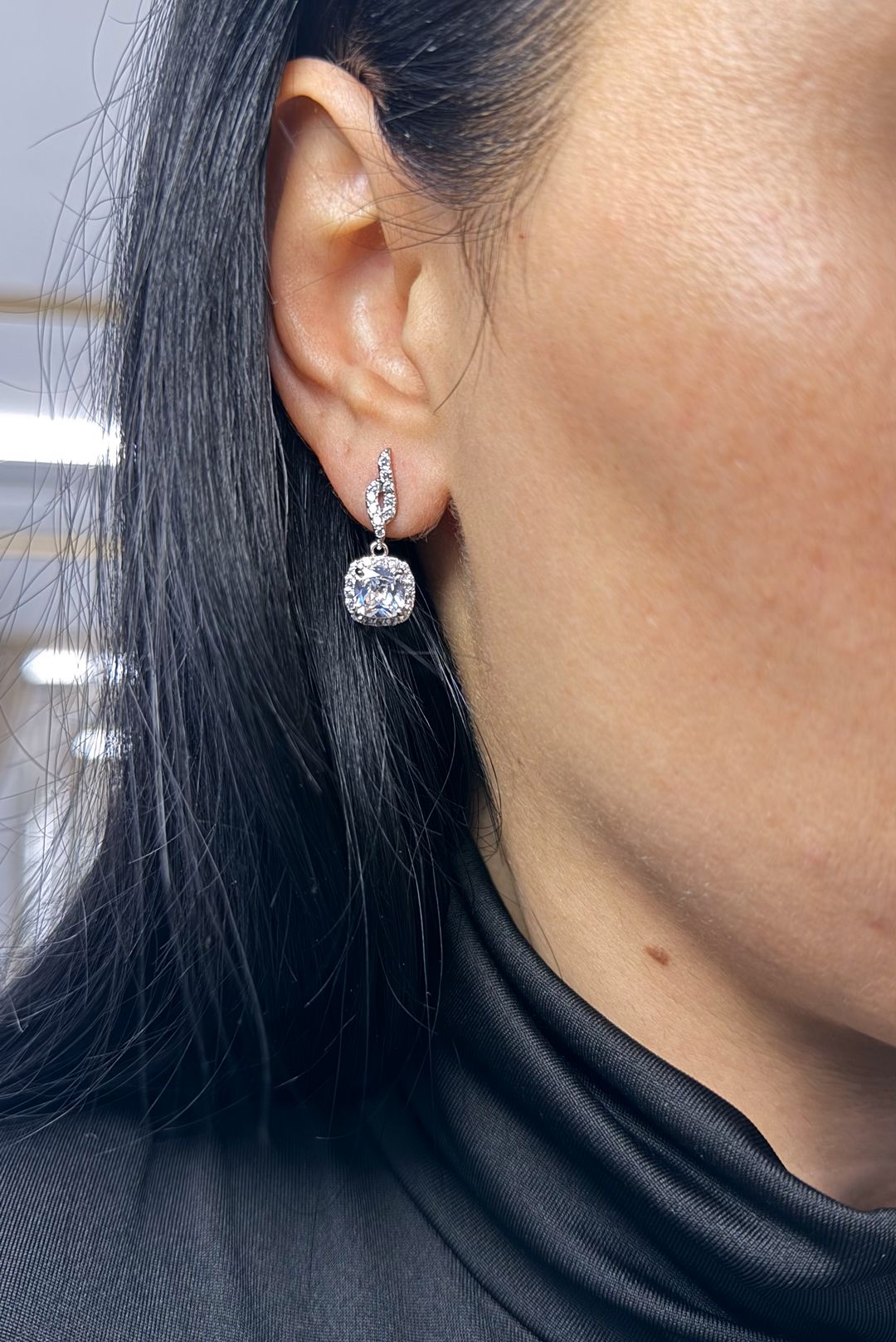 VVS1 κυβική ζιρκονία σε τετράγωνo σχήμα δεμένα σε σκελετό απο ασήμι 925.