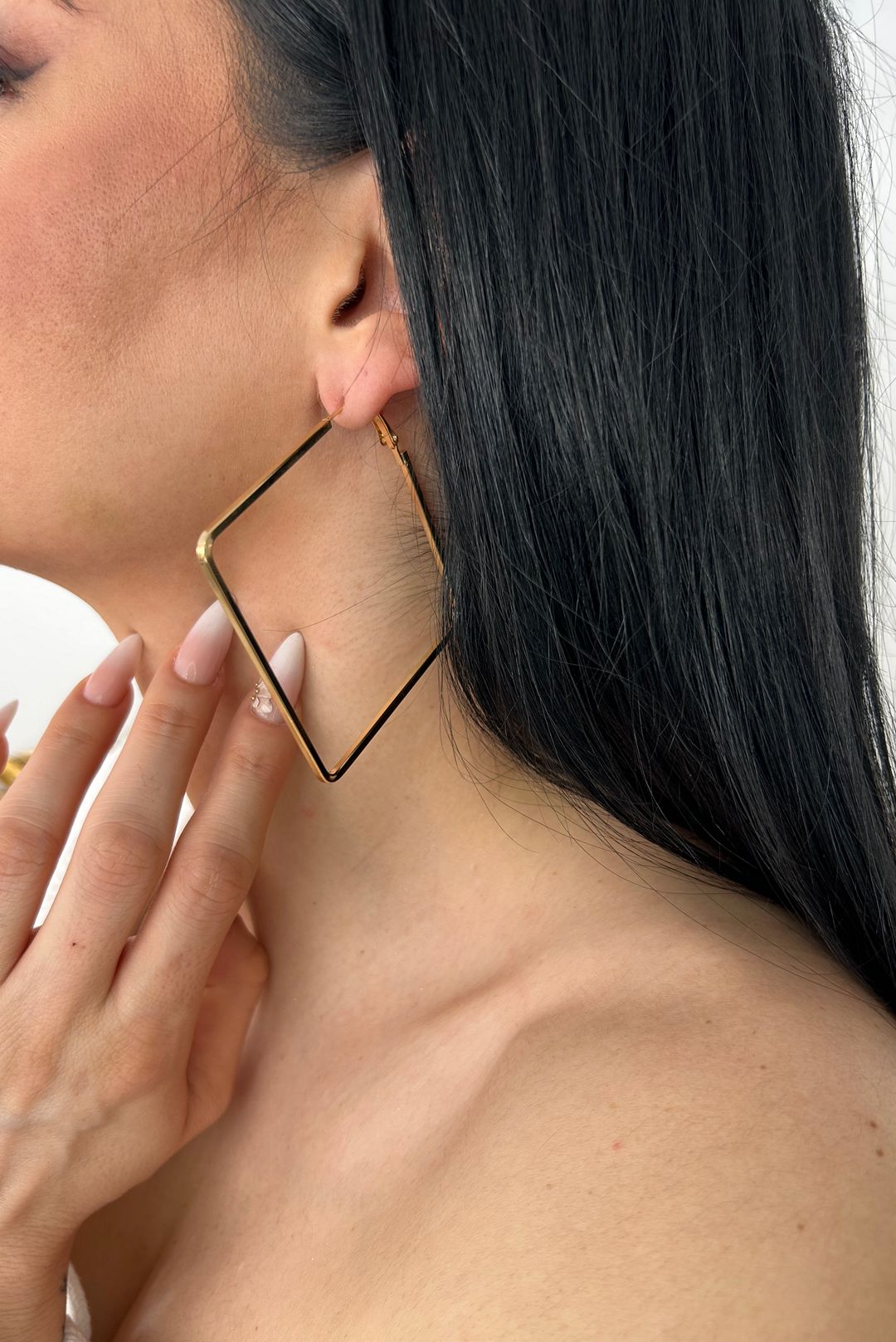 Square golden platted long earrings.Diameter 6 cm