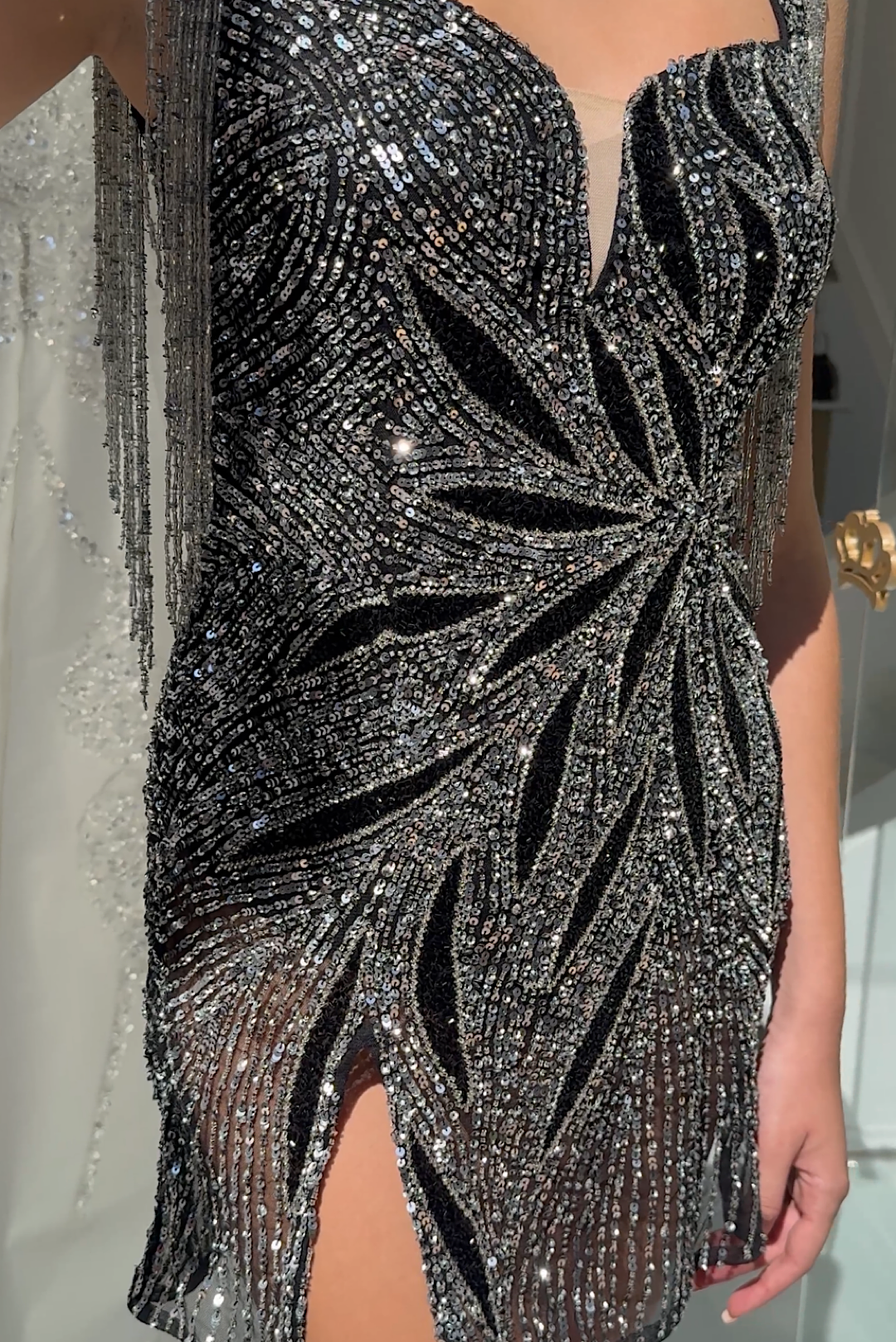 Χειροποίητο μίνι φόρεμα σε αποχρώσσεις μπλέ ,μαύρο και μπέζ, με δαντέλα.