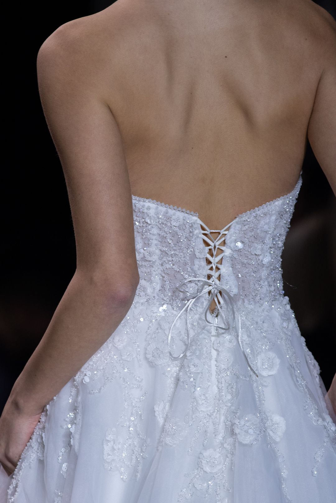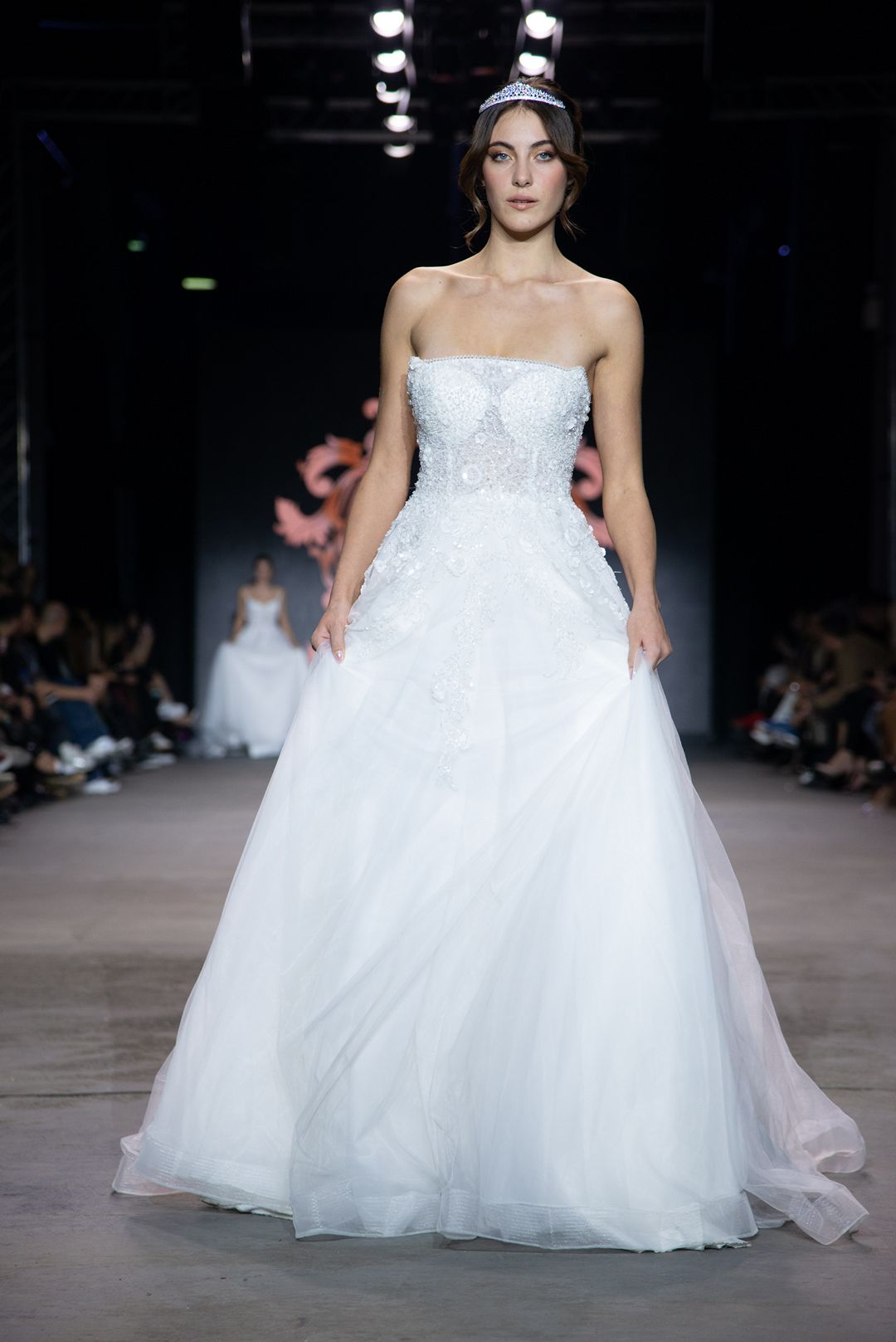 Εντυπωσιακό χειροποίητο λευκό νυφικό σε Bohemian στυλ με κορσέ διακοσμημένο με κρυστάλoυς, και ουρά 1μ